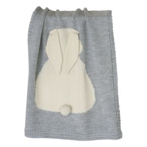 Зайка детский плед 115х190 см светло-серый меланж + суровый 80% шерсть мериноса 20% ПАН акрил Apero
