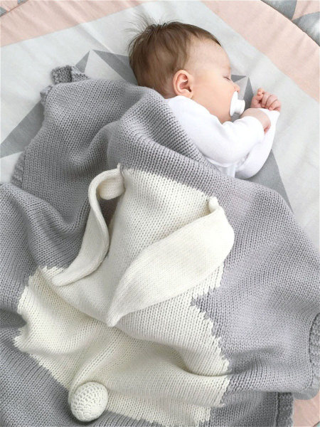 серый цвет “Зайки” делает плед отличным подарком как мальчику, так и девочке;