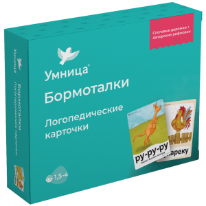 • 16 двусторонних ламинированных логопедических карточек (32 бормоталки) с закругленными краями, красивыми иллюстрациями и логопедическими дорожками.