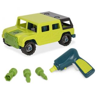 В набор входят: разборный внедорожник, шуруповерт на батарейках с 3 насадками. Автомобиль разбирается на 21 деталь.