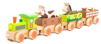 Janod Поезд ферма - это детская каталка на верёвочке, которая может стать одной из самых любимых игрушек Вашего малыша. Как здорово везти за собой длинный паровозик с разноцветными вагончиками. А если в нем еще и едут пассажиры-зверушки, то восторгу ребенка просто не будет предела. Он сможет почувствовать себя самостоятельным и ответственным машинистом. Эта забавная каталка-паровоз поможет малышу изучить цвета и формы, научит сортировать элементы по назначению.