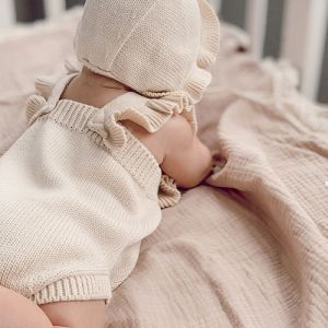 Комплект Milky в пшеничном цвете – идеальный вариант для малышей с самого рождения. Вязаное боди и шапочка подойдут как на повседневную носку, так и для особых случаев.