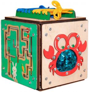 Бизикуб Крабик - это целый набор из 6 граней бизибордов и игр по методике Монтессори. Один бизикуб может заменить до 6 игрушек, а это хорошая экономия денег. С помощью бизикуба ребенок познает мир, он учится нажимать, открывать, крутить, перемещать различные предметы, переключаться с одного вида деятельности на другой. И главное, в процессе игры малыш и сам не заметит, как научится считать, выучит времена года и дни недели.