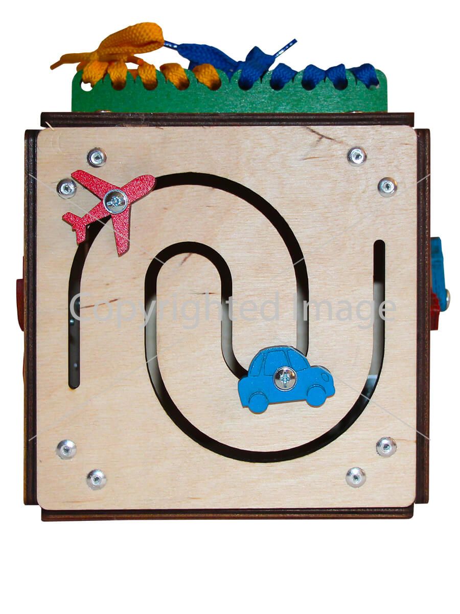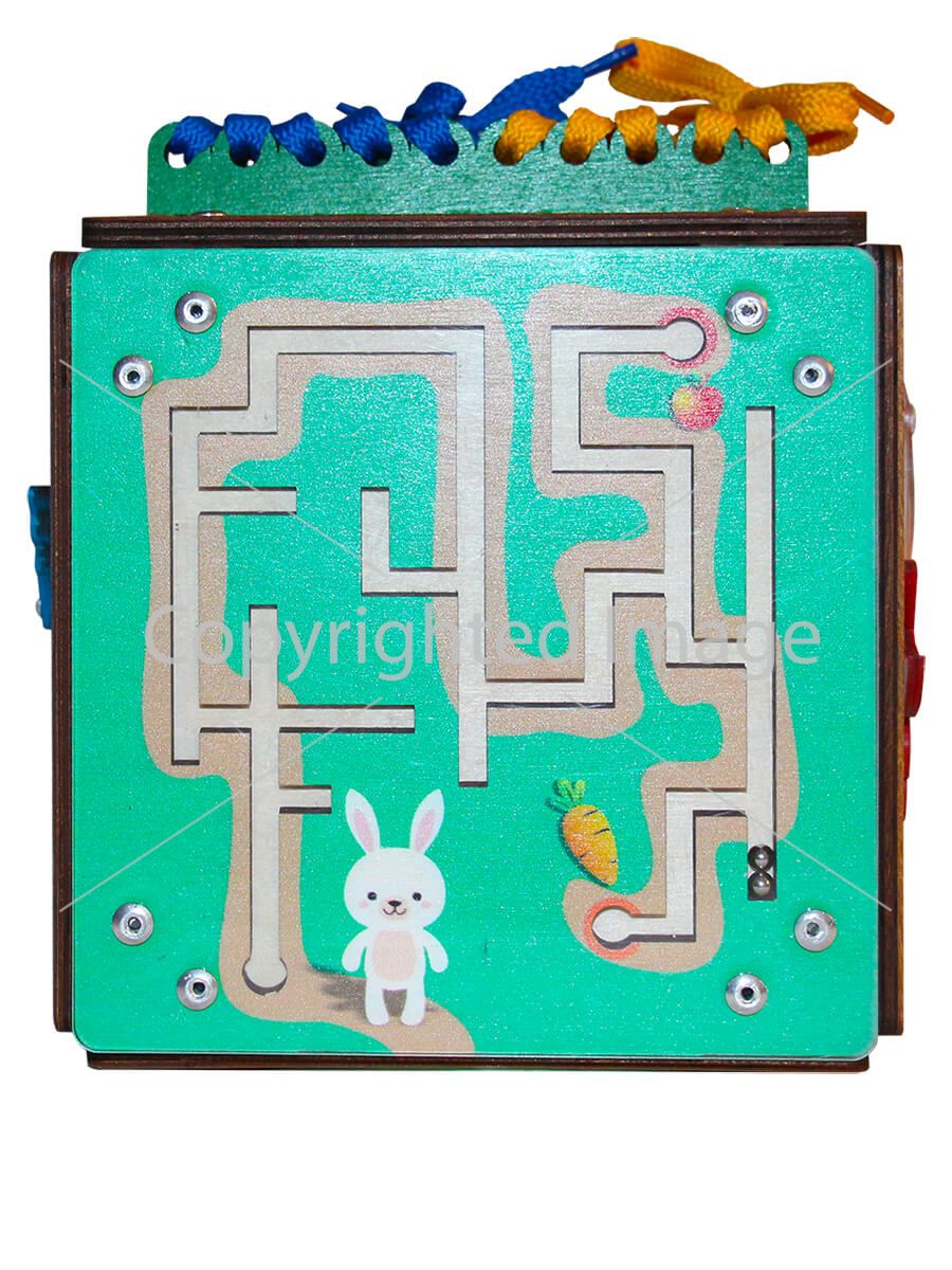 2-я сторона: магнитный лабиринт - с помощью магнитной ручки нужно провести металлический шарик по лабиринту;