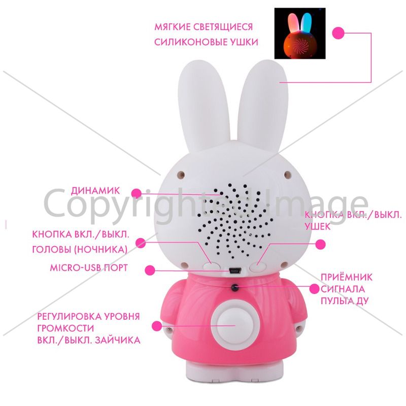 Большой зайка alilo G7 играет разную музыку, рассказывает сказки, воспроизводит записанный контент или голос, а также светится в темноте (голова и ушки).