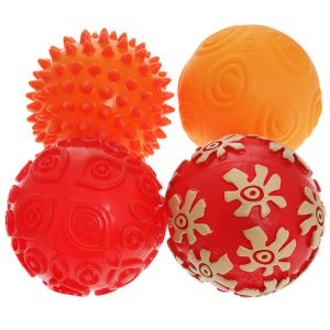Набор из 4 мячиков разных цветов и фактур. Можно сжимать, кидать, катать, грызть - и наслаждаться! Способствуют получению нового сенсорного опыта малышом.