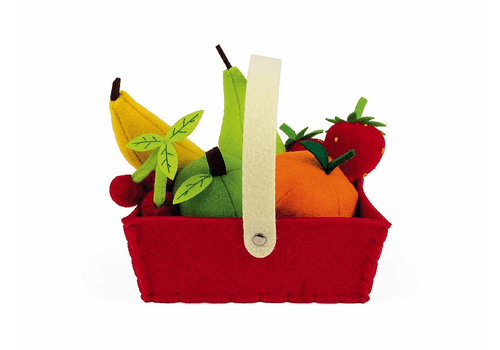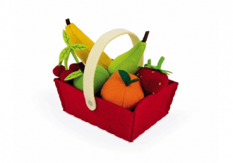 Набор игрушечных фруктов для детских сюжетно-ролевых игр о магазине. Мягкий набор от французского производителя Janod изготовлен из приятного на ощупь фетра. В корзине лежат 8 фруктов: мандарин, 2 клубники, банан, груша, яблоко и 2 пары вишен. С таким набором игры в продавца и покупателя станут еще более интересными.