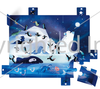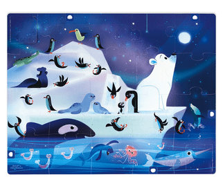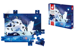 5 выдвижных язычков для увеличения размера пазла и 3 "открывающихся" окошка, чтобы найти множество сюрпризов, скрытых на иллюстрациях. На что смотрит белый медведь? Кто спрятался на его спине? Кто же там высоко летит?