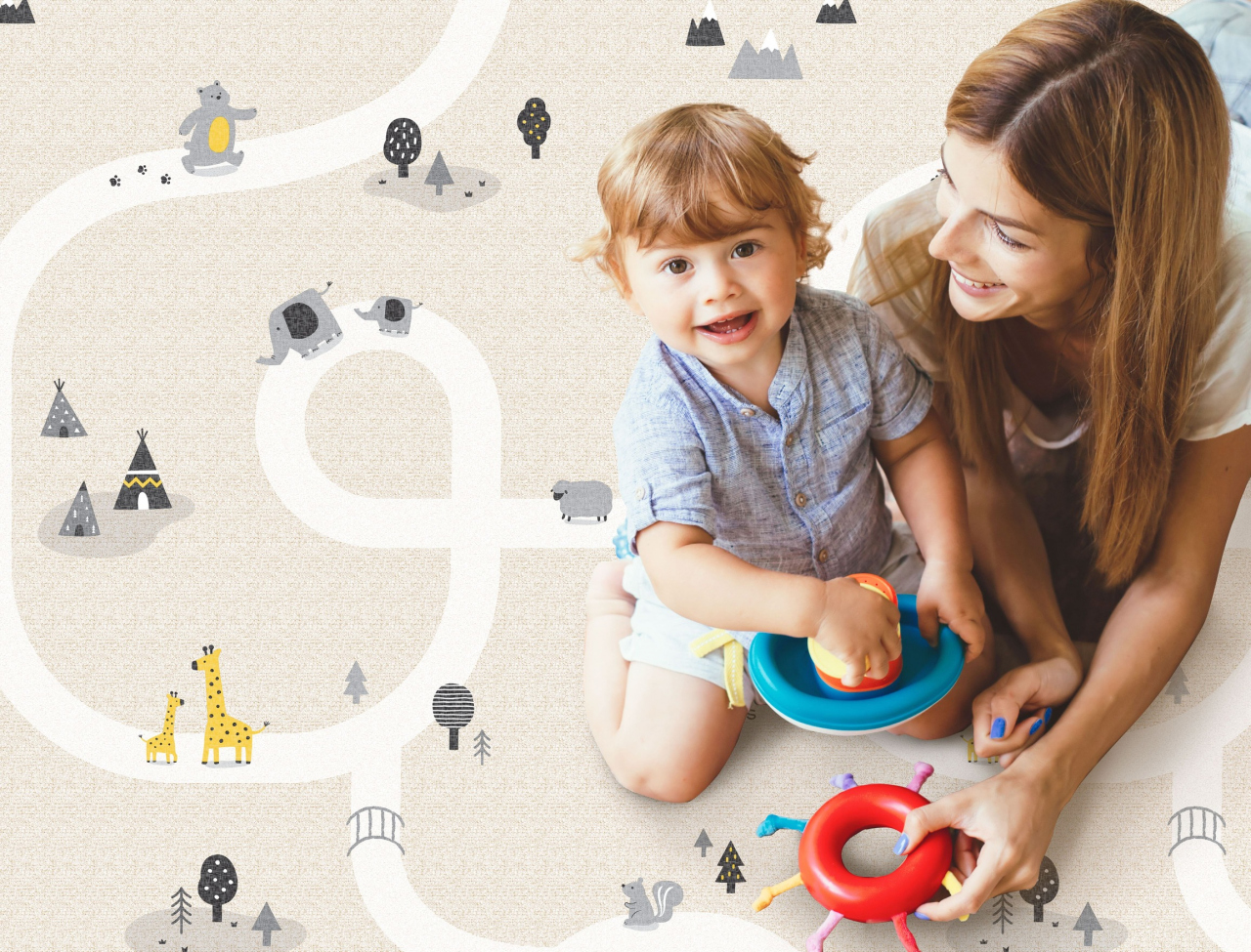 Коврик универсален: мальчики оценят нарисованные дорожки, на которых можно устроить настоящие автогонки; девочки непременно подружатся с добрыми непоседливыми зверями.