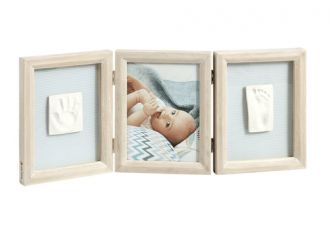 Тройная деревянная рамочка классического дизайна позволит создать неповторимый сувенир на долгую память. Позволяет разместить фото и 2 отпечатка - ручки и ножки - малыша. Набор наклеек дает возможность проявить фантазию и персонализировать внешний вид рамочки.
