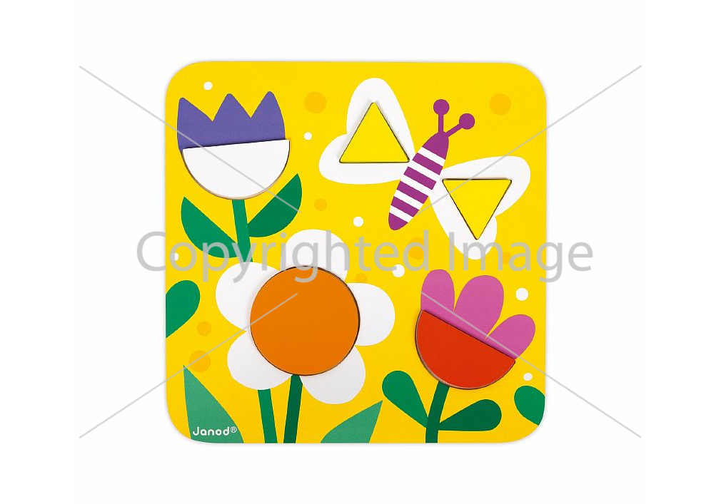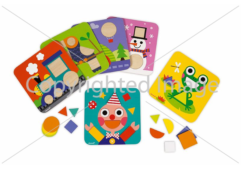 Сортер Фигуры и цвета 6 двусторонних карточек и 29 деревянных фигур Janod Janod