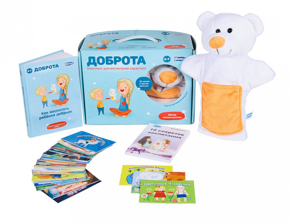 Комплект «Воспитание характера сказкой. Доброта» – это настоящий помощник для заботливых родителей. Он основан на уникальной методике – воздействие на характер малыша происходит при помощи сказки, мягко и бережно формируя положительные черты и корректируя негативное поведение.