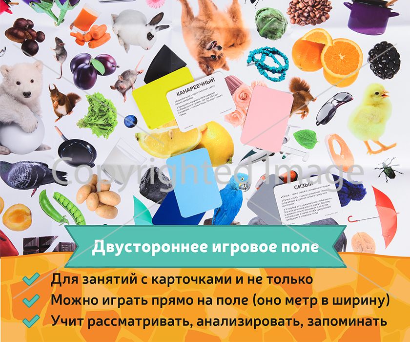 С обратной стороны каждой карточки дано название и описание цвета. И с ними прописано очень много игр, причём не только в формате «посмотреть», но и «поползать», «побегать», «поиграть в прятки» и так далее. ⠀