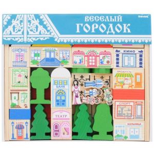 Веселый городок конструктор деревянный развивающий 56 деталей Томик
