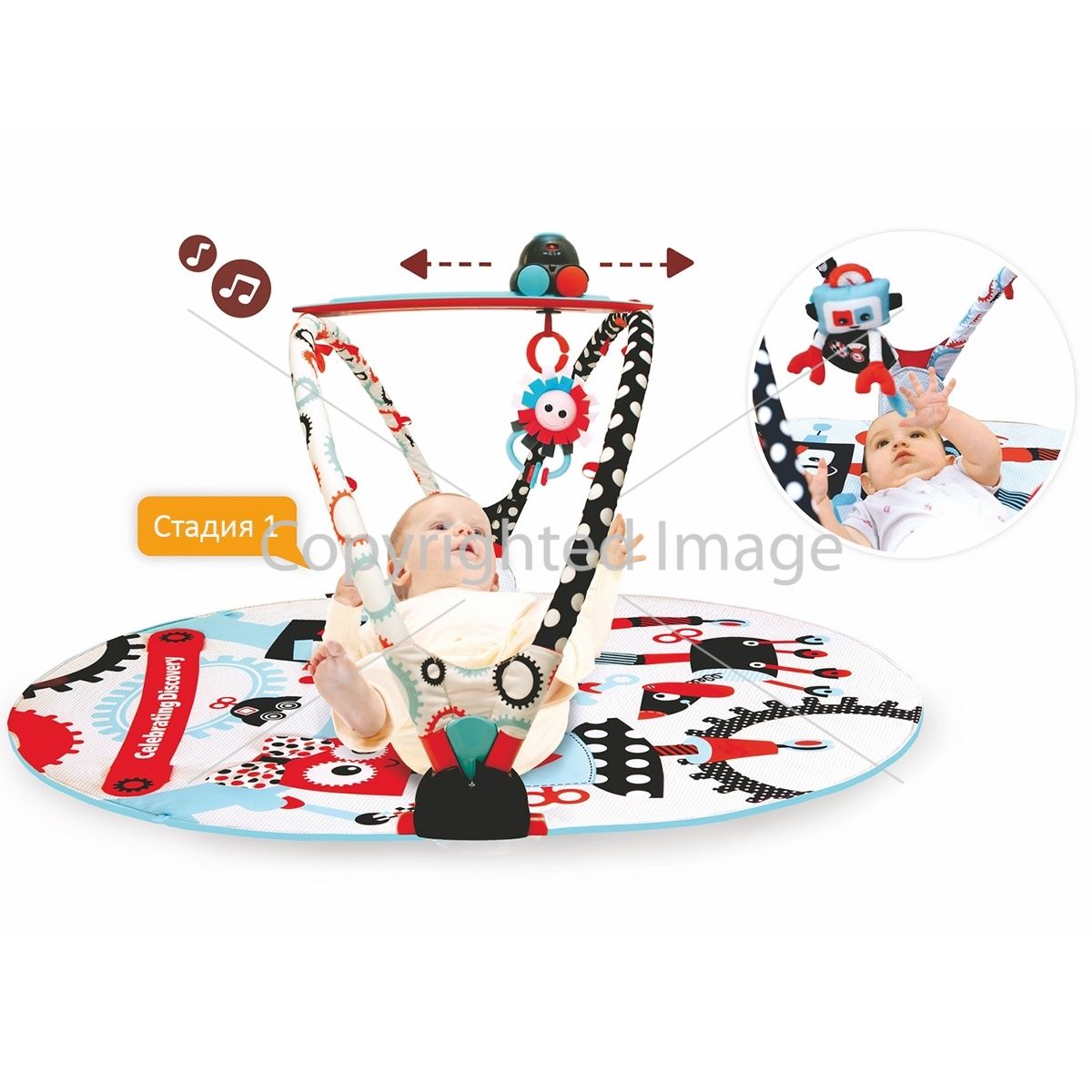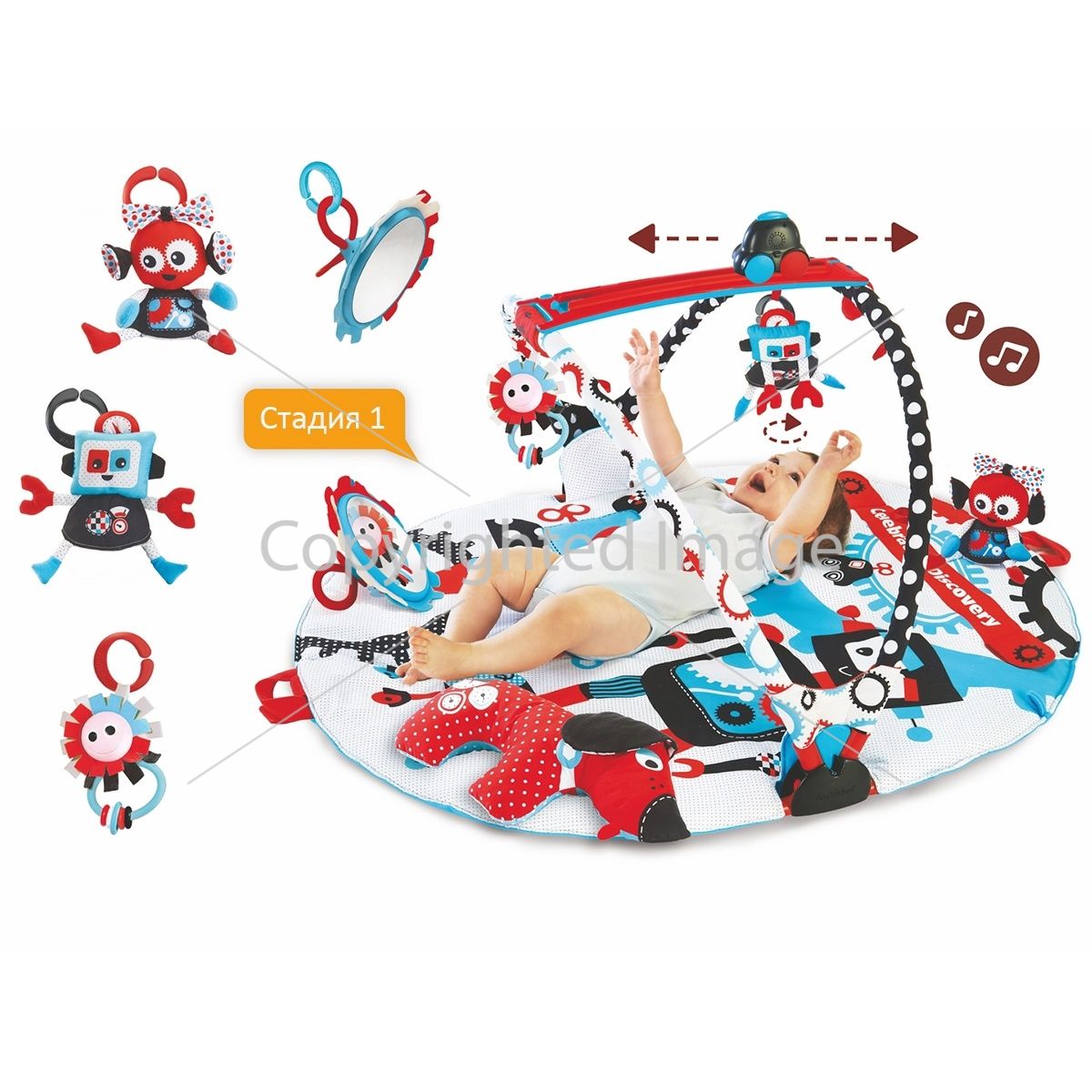 Yookidoo коврик развивающий Страна роботов интерактивный круглый с дугами Yookidoo