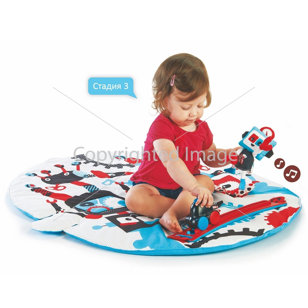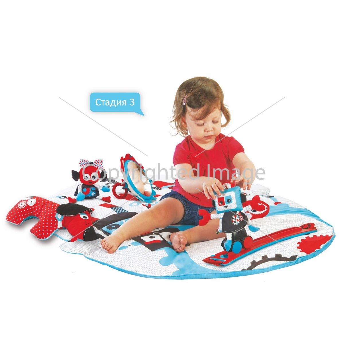 Коврик приспособлен для 3-х основных стадий детского развития, предшествующих первому шагу: