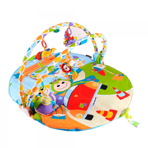 Погремушки и зеркало с помощью колечек подвешиваются на дугу, ими можно играть отдельно или брать с собой на прогулки, закрепив на коляске. Автомобильный трек устанавливается непосредственно на коврике или фиксируется между дугами. По треку ездит музыкальная машинка. Кроме того, сам коврик имеет 2 режима музыкального сопровождения: бодрый и спокойный. Игровой коврик Yookidoo помогает развивать у малышей мелкую моторику, зрительные, слуховые и тактильные навыки.
