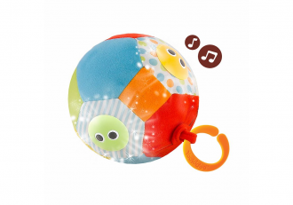 Красочный мяч от Yookidoo изготовлен из приятных на ощупь материалов с разными текстурами.